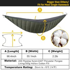 2 Person Outdoor Ultralight Camping Hammock Under Quilt Thermal Blanket Winter