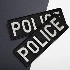 2-Piece Embroidered Police Patch for Vest, Jacket, Hook & Loop, Large & Small