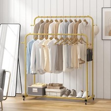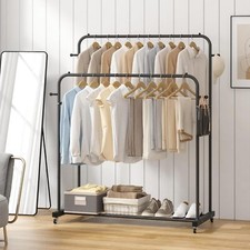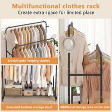 2-Tier Rolling Garment Rack w/Wheels, 4 Hooks Clothes Organizer for Bedroom