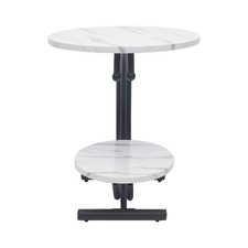 2-Tier Round End Table Side Table with Storage Shelf for Living Room Black+White