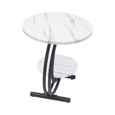 Be the first to review “2-Tier Round End Table Side Table with Storage Shelf for Living Room Black+White” Cancel reply