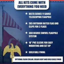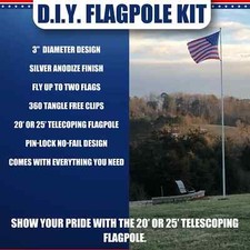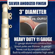 20′ & 25′ Delta Pin-Lock TELESCOPING Flag pole (Silver)