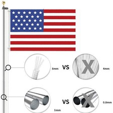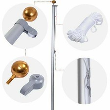 20 ft Aluminum Flag Pole Sectional Flagpole Kit Heavy Duty 3’x5′ US Flag, Silver