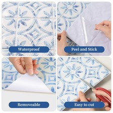 20-Sheet 12″x12″ Blue Flower Peel and Stick Backsplash Wall Mosaic Tile