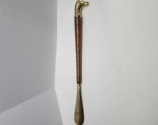 20″ Shoe Horn Horse Head Handle Golden in Brass & Wood Shaft