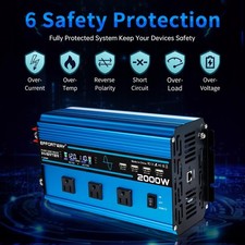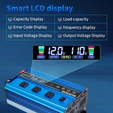 2000W 4000W 12V to 120V Pure Sine Wave Power Inverter 4USB & 2 Remote Control