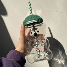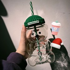 🎄🎊2026 Starbucks Barista Bear Glass Jar Cold Cup With Straw Christmas Gift HOT