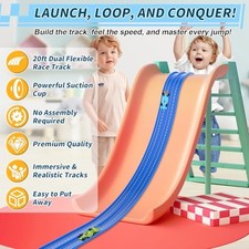 20Ft Flexible Race Track, Slot Car Race Track Set for Kids Ages 3+, Dual Blue