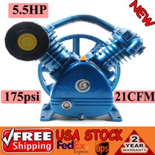21CFM 5HP 175 PSI Air Compressor Pump Motor Head Double Stage V-Style 2-Cylinder