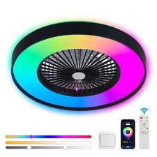 23” Modern Black RGB LED Ceiling Fan Light kit Flush Mount with APP & Remote