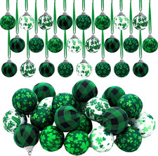 24 Pcs St Patricks Day Ornaments Hanging Balls 1.6 Inch Small Green Shamrock Whi