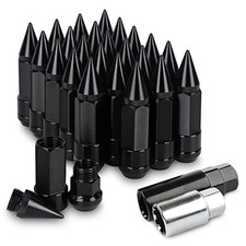 24Pcs Anti Theft Spikes Extended Tuner Wheel/Rims Lug Nut M14X1.5+Socket() Black