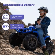 24V Kids Ride on Toy 4 Wheeler Quad Car 4-6mph Top Speed with Low&High Speed LED