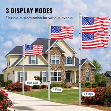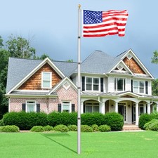 25FT Telescopic Flagpole Kit Heavy Duty Aluminum Flag Pole American Silver