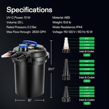 Be the first to review “2630GPH 2600Gal Pressure Bio Filter Koi Pond Filter w/ 13W UV Sterilizer Light”