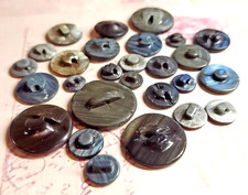 27 Vintage Antique Smoky Pearl Oyster Shell Buttons ~ over 3/8″ to almost 1-1/8″