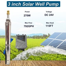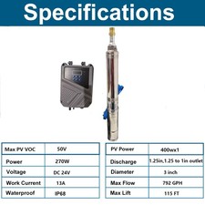 270W 3″ Solar Pump Submersible Pump Bore DC 24V Deep Well Pump + MPPT Controller