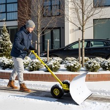 29 x 18in T-Handle Snow Plow with Inflatable Wheels Heavy Duty Human-Powered