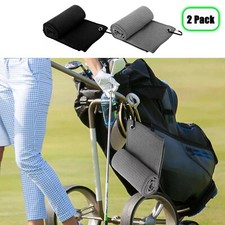 2Pack Microfiber Golf Towel With Carabiner Clip on Golf Bag Black+Gray 30x50cm