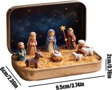 2x Mini Christmas Nativity Set in a Tin Box, Pocket Size Nativity Scene Gift Tin
