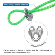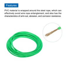 3/16 Green Vinyl Coated Wire Rope 20ft Galvanized Steel(2PCS M6 Loop Sleeves)