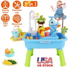 3-in-1 Kids Water Play Table w/ Electric Faucet – Educational Toddler Toys