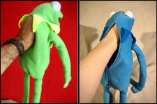 3 KERMIT RARE PUPPETS GREEN+YELLOW+BLUE HAND CRAFTED RANA RENE MUPPETS toys