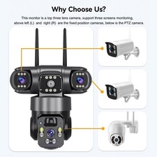 3 Lens 12MP Solar Battery Home Security Camera Outdoor Wifi Wireless PTZ CCTV US