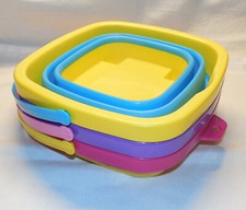 3 Multipurpose Collapsible Buckets Compact Bucket 1/2 Gallon Yellow Purple Pink