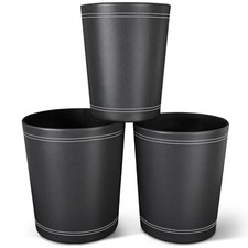 3 Pack Black Round PU Leather Wastebasket,Trash Basket,Small Trash Can black