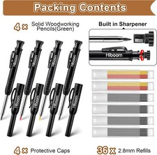 3 Pack Carpenter Pencils Set with 24 Refills, 2.8 Mm Mechanical Carpenter Pencil