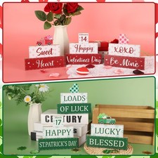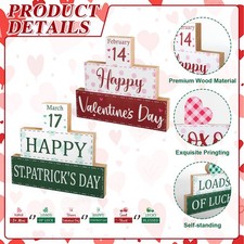 3 Pcs Valentines Day Decorations Indoor St Patricks Day Wooden Table Sign Rever