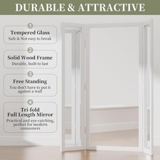 3 Way Trifold Full Length Floor Mirror with Wood Frame for Bedroom Closet Decor