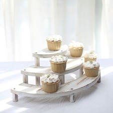 3 Whitewashed 3 Tier Wooden CUPCAKE STANDS Semicircle Dessert Pedestals Events