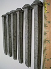 30- BIG, VINTAGE, 4″ x 5/16″, SQUARE GALVINIZED STEEL, CHISEL POINT, BOAT NAILS