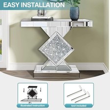 Be the first to review “32″ Long Silver Silver Mirrored Console Table with Crushed Diamond lnlay” Cancel reply