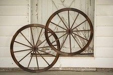 Be the first to review “36 in Steel-rimmed Wooden Wagon Wheels – Decorative Wall Decor, Set of Two” Cancel reply