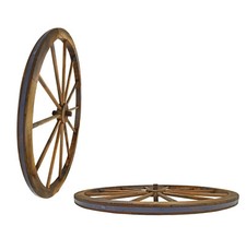 36 in Steel-rimmed Wooden Wagon Wheels – Decorative Wall Decor, Set of Two