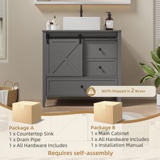 36″ Small Bathroom Vanity with Top Sink Cabinet Ceramic Sink NO Faucet &Drain