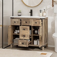 36″Rustic Brown Bathroom Vanity with Ceramic Sink, Four Sliding Drawers & Door