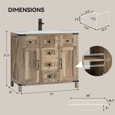 Be the first to review “36″Rustic Brown Bathroom Vanity with Ceramic Sink, Four Sliding Drawers & Door” Cancel reply