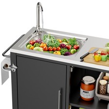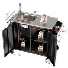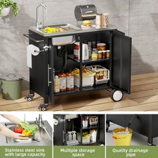 38″x18″x35″ Outdoor Grill Table w/304 Stainless Steel Sink Cabinet Wheels Garden