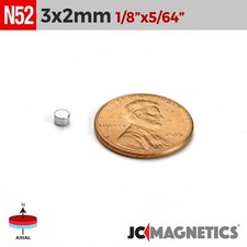 3mm x 2mm 1/8″x 5/64″ N52 Strong Rare Earth Neodymium Small Magnet Discs 3x2mm