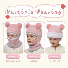 3Piece Kids Winter Hat Scarf Mittens Set, Toddler Girls Fleece Lined Neck Warmer