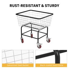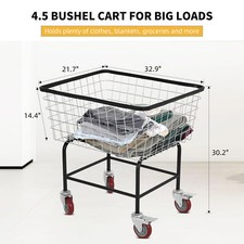 4.5 Bushel Commercial Wire Laundry Cart Metal Basket Rolling Cloth Storage Cart