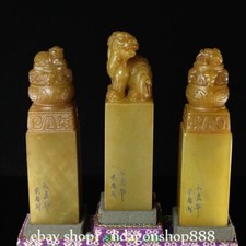 Be the first to review “4.8″ Old Chinese Yellow Shoushan Stone Carved Lion Beast Statue Seal Signet Pair”