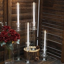 4 Crystal Clear Glass Hurricane Taper CANDLE HOLDERS Cylinder Shades Party Event