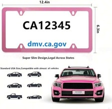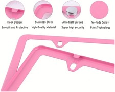 4 Holes Super Slim Matte Pink License Plate Frames, Stainless Steel Pink