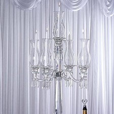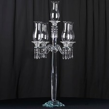 40-Inch Clear 5 Arm Crystal GLASS Candelabra Hurricane Taper CANDLE HOLDER Party