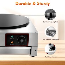40cm 16” Crepe Maker Pancake Machine Hotplate Nonstick Griddle Commercial Steel